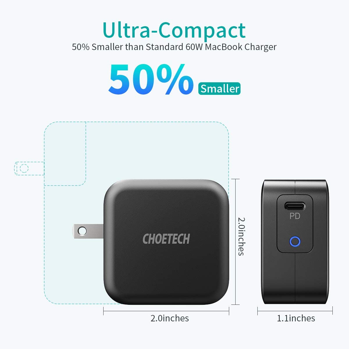 USB C Cargador PD 61W CHOETECH, [GaN Tech]USB Tipo C Cargador Carga Rápida PD 3.0 para MacBook, Macbook Air,Macbook Pro,iPad Pro,Matebook,Nintendo Switch,Samsung,Lenovo,ASUS,DELL,HP y Type C Celulares