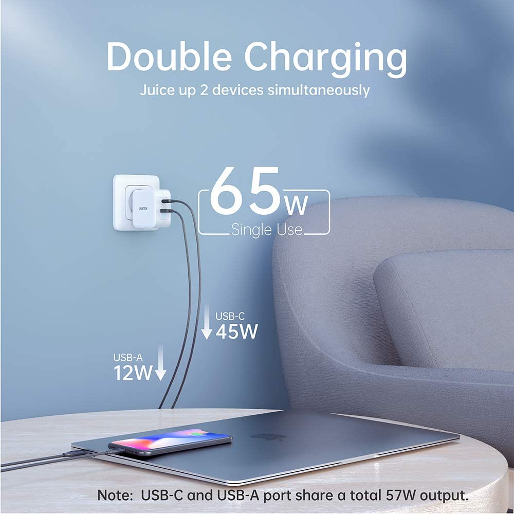 Tamaño compacto: alimentado por GaN Tech hace que este cargador USB C sea un 35% más pequeño que el cargador original de 65 W PD, el enchufe plegable es fácil de plegar en su lugar, ultra compacto y ligero para garantizar la máxima portabilidad donde quiera ir.