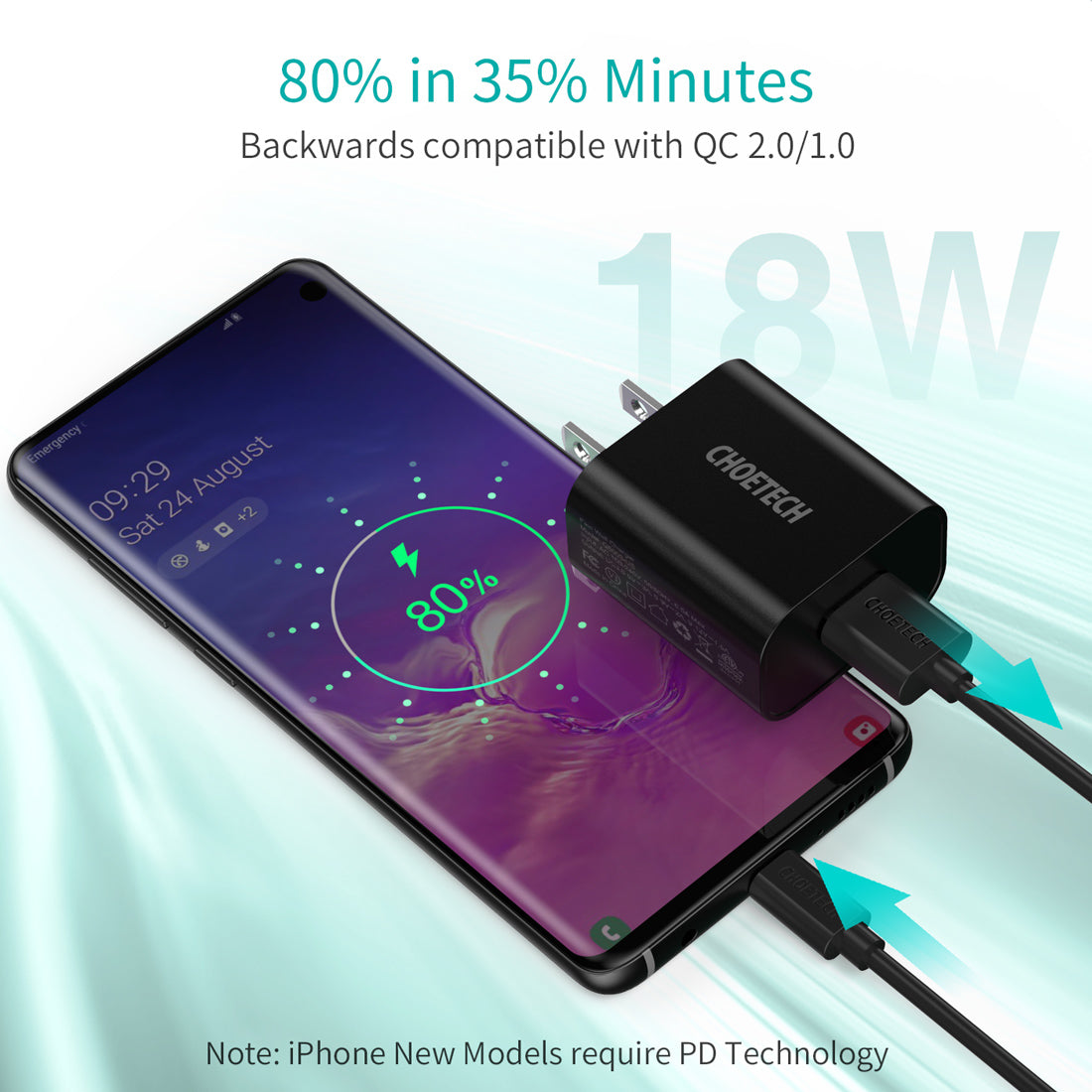 【 Cargador Quick Charge 3.0】 Con la tecnología de carga QC 3.0, garantiza una velocidad de carga rápida hasta 4 veces más rápido que el cargador convencional. Compatible con la tecnología QC 1.0 y 2.0